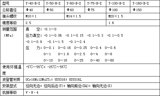 Y-60B-Z軸向無邊壓力表技術(shù)參數(shù)表: